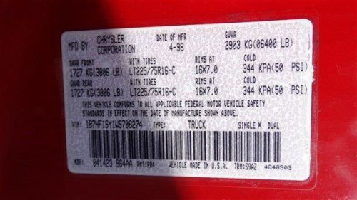 VIN (Vehicle Identification Number): 1B7HF16Y1WS708274