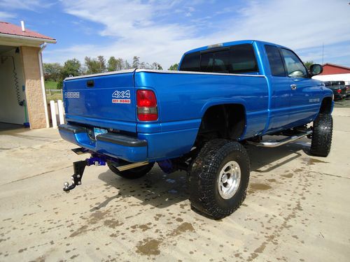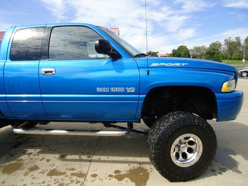Up for auction is my 2001 dodge ram 1500 sport. It has 6" of suspension lift and 3" of body lift. The truck sits on 35" dick Cepek tires with 16 ' mickey thompson classic locker aluminum rims.Ive owned this truck almost two years with the intension of getting it show ready. The transmission is newly rebuilt with less than 8000 miles on it. I have replaced alot of parts on this truck.I will start with a new battery, water pump, upper and lower hoses, belt, spark plugs ,wires, distr., map sensor, throttle position sensor, heater core, dash board, and exhaust system. The exhaust system is new from the cat. back.The truck has 4-10 gears and the four wheel drive works great. I have not had this truck in the mud since I have owned it . This truck has a limited slip rear end and all new fluid in the differentials.The truck is in great running condition and turns alot of heads with its aggressive looks and throaty sound. The truck is in need of new tires. as the ones on it are getting worn down. Tires are the only thing this truck needs before winter.