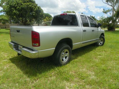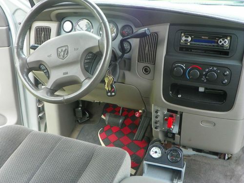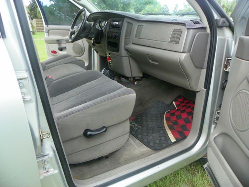 FOR DIESEL LOVERS ONLY - THIS IS A UNIQUE DODGE 1500 RAM QUAD CAB TRUCK. THE V-8 GAS MOTOR WAS SWAPED OUT FOR A 4 CYL 5 LETRE TURBO DIESEL ENGINE. DIESEL ENGINE IS MADE BY WUXI MOTOR WORKS IN CHINA, WUXI HAS BEEN BUILDING TRUCK DIESEL ENGINES STARTING IN 1943. THIS IS A HIGHWAY APPROVED ENGINE USED ALL OVER THE WORLD. THE DIESEL IS FACTORY NEW BUT IS OLD STOCK; NON ELECTRONIC DIRECT INJECTED FUEL SYSTEM AND AN UPGRADED TURBO AND 3" EXHUST SYSTEM. ENGINE DELIVERS 160 HP WITH 365 LBS OF TORQUE. IT DOUBLED THE MPG OVER THE GAS ENGINE AT 25 MPG AVERAGE. I USED A CHEVY 700R4 AUTO TRANS AND HAD IT BUILT TO HOLD DIESEL POWER USING A 1600 CONVERTER. THIS TRUCK IS NO DOG ... IT RUNS OUT WITH POWER AND SPEED YOU WON'T BELIEVE. HAS 1900 MILES AND THE RUN TIME IS ON THE TACH. LOOKS LIKE FACTORY INSTALL, ICE COLD A/C; NO CHEAP WORK HERE, THIS IS THE TRUCK DETROIT SHOULD BUILD; NOT THE BIG WORK HORSE BUT NOT THE LITTLE UNDER POWERED SMALL TRUCK. NO BODY DINGS, NO RUST OR ROT, UNDER SIDE AS CLEAN AS TOP SIDE. FACTORY BED LINER. PAINT IS NEAR PERFECT. HARD TO BELIEVE TRUCK IS A 2002; 95% MICHELIN TIRES, PIONEER STERO/CD. VERY CLEAN, GARAGE KEPT FLORIDA RIG. FLY TO TAMPA, FLORIDA AND I WILL PICK YOU UP; YOU CAN DRIVE IT HOME. NO RESERVE.