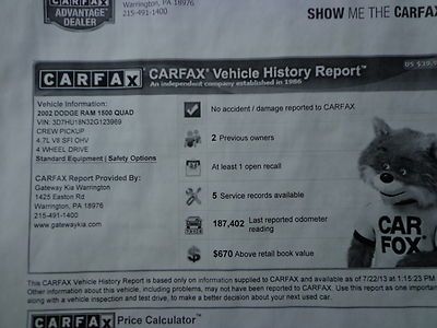 2002 Dodge Ram 1500 Slt Crewcab 4x4 V-8 Auto Pickup Clean Carfax No Reserve on 2040-cars