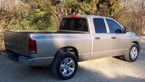 2003 DODGE RAM 1500 SLT CREW CAB WITH HEMI PACKAGE - RUNS AND DRIVES LIKE NEW - BEAUTIFUL DESERT SAND METALLIC EXTERIOR WITH GRAY CLOTH INTERIOR - AUTOMATIC - POWER WINDOWS - POWER DOOR LOCKS - CRUISE CONTROL - TILT WHEEL - POWER SEATS - FRONT BUCKET SEATS WITH CENTER FOLD DOWN ARMREST CONSOLE - PREMIUM AM/FM STEREO WITH CD - TINTED WINDOWS - FOG LAMPS - POWER HEATED REAR VIEW MIRRORS - TOW PACKAGE - BEDLINER - ALLOY WHEELS - 5.7 LITER V/8 ENGINE RUNS LIKE A BAT AND SOUNDS GREAT WITH ITS BORLA DUAL EXHAUST. THIS TRUCK HAS LOW MILES AND HAS BEEN PERFECTLY MAINTAINED, RUST FREE NORTH TEXAS TRUCK SINCE NEW. |