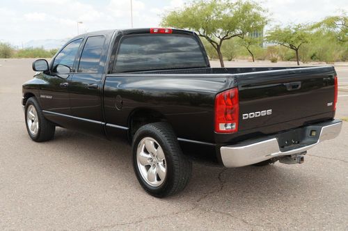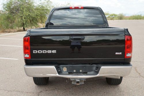 2004 DODGE RAM 1500 SLT CREWCAB WITH HEMI 5.7L AND WITH 103K ORIGINAL MILES! ARIZONA TRUCK SO NO RUST!! NEW COOPER DISCOVERY TIRES! Power windows,locks and mirrors, cruise control, automatic,17 INCH ALLOY WHEELS, AFTER MARKET EXHAUST, TRUCK RUNS AND DRIVES GREAT! SOUNDS TOUGH!! some minor con's are that the hood has some crow feet in paint, minor paint chips on lower truck bed from tires.and some peeling on front passenger alloy wheel.many many pro's such as non-smoker truck from the southwest so no rust! no leaks no weird smells or no check engine light. new sony Cd player and much more! Please call michael Rudman for more questions or pictures at (602)312-9426