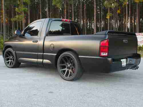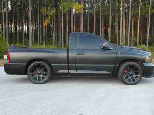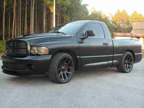 THIS IS A CUSTOM 2004 DODGE RAM 1500 SRT-10 VIPER TRUCK. IT HAS OVER $10,000.00 IN CUSTOM MATTE BLACK PAINT AND WHEELS, ALSO HAS FACTORY NAVIGATION, TWO TONE SUEDE AND LEATHER SEATS, BED LINER, 2 8' SUBS BEHIND THE SEATS, NEW TIRES, UPGRADED SOUND, SIX SPEED MANUAL, PUSH BUTTON START, FLOWMASTER EXHAUST, AND MUCH MORE. THIS TRUCK LOOKS AND DRIVES LIKE NEW. NO ISSUES AT ALL. THE PAINT HAS NO SCRATCHES, DENTS, OR SWIRL MARKS. THE PAINT JOB WAS DONE PROFESSIONALLY AND COST OVER 6K. MECHANICALLY THE TRUCK NEEDS NOTHING. IF YOU ARE LOOKING FOR A ONE OF A KIND TRUCK LOOK NO FURTHER. IF YOU HAVE ANY QUESTIONS PLEASE CALL ME AT 850-541-2723.