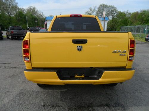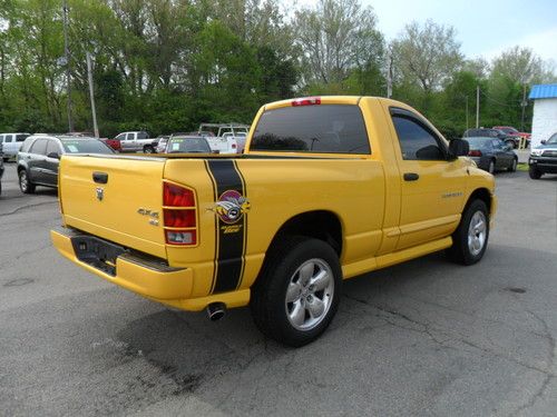 Up for a sale is a 2005 Dodge Ram Rumble Bee truck. The truck has actual miles and clean and clear title. Truck is loaded with all the options. Has the twenty inch chrome wheels and good tires. This truck has an aftermarket CD player, ice cold air conditioning, heat, power seat, 4x4, and much more. The automatic transmissions shifts perfect and the 5.7 Hemi runs and sounds great! This truck is numbered 0745 and is a real Rumble Bee edition, a true collectors item! Great truck. We finance locally and would be happy to answer any questions. Please call us at Smith's Auto Sales 937-743-5909. Thanks