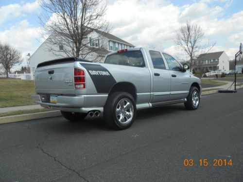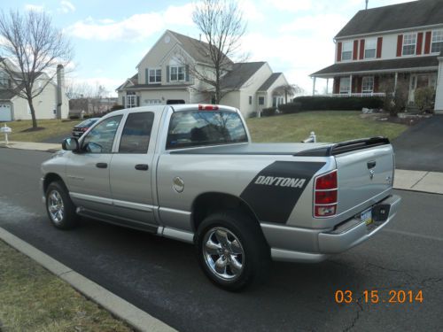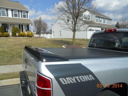 2005 Dodge Ram Daytona, special edition. 5.7 hemi, automatic, 40,000 original miles. I always used it as a weekend vehicle, not driven in poor weather conditions. In excellent condition inside and out. Truck is 100% stock, never molested. Adult owned and driven. Maintained by 30 year master tech at dealership. Oil changed every 6 months. Only driven a couple thousand miles per year. SLT model, power windows locks, seat, 6 disc cd. Everything works like new. New Goodyear Wrangler tires (less than 1,000 miles). New low profile tonneau cover. Comes with Dodge SRT ram wing (low) and the original Daytona wing (high). Both wings are in Excellent condition.