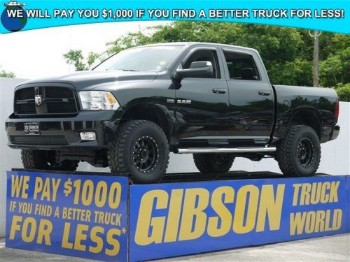 WWW.GIBSONTRUCKWORLD.COM*2010 Dodge Ram 1500 Sport Leather Crew Cab Hemi 6 Inch Lifted Monster 4X4* Carfax 1 Owner with powertrain warranty, good thru 7/22/15 or 100k miles. Also comes with 1 year REAL FREE BUMPER TO BUMPER WARRANTY honored anywhere in the United States with our exclusive 15 DAY RETURN/EXCHANGE POLICY! That is how confident we are in our trucks! Do not make a $3K+ mistake, B4 you buy a used truck demand to see shop bills & have the truck inspected by a 3rd party! Riding high on $5,000 of 6 inch lift kit with 35 inch tires, $250 power sliding rear window, $245 backup sensors, $120 adjustable pedals, heated/cooled leather seating, heated steering wheel, nerf bars, CD player, steering wheel controls, tilt steering, cruise control, floor shift, keyless entry with alarm, towing package, power windows, power mirrors, power door locks*Gibson is the only dealer that gives a REAL FREE 12 MONTH BUMPER TO BUMPER WARRANTY VALID ACROSS THE UNITED STATES, 12 MONTHS FREE MAINTENANCE FROM OUR 23 BAY SERVICE DEPARTMENT AND OUR EXCLUSIVE 15 DAY RETURN/EXCHANGE POLICY! It sounds too good to be true, but it is true! We will pay you $1,000 if you find a better truck for less, Gibson Truck World is Nations ahead of the competition! AT GIBSON TRUCK WORLD AN EDUCATED CONSUMER IS OUR BEST CUSTOMER**Repair Description: Total Invested = $1,155.33*10 Mile Road Test, 135 Point Inspection, Lube, Oil & Filter, Replaced Rear Pads, Replaced Rotors, Replaced Front Pads, Replaced Rotors, Replaced Transmission Cooling Lines, Serviced Rear Differential, Replaced Air Filter & Wiper Blades, Balanced & Rotated Tires, AlignmentBattery Condition Test : Good, Alternator Condition Test : Good*Labor time quoted by All Data Universal ShopKey* Gibson Truck World in Sanford, FL has the lowest price for used trucks period! Gibson specializes in pre-owned Ford trucks, Dodge trucks, Chevrolet trucks, GMC trucks, Jeeps and SUVs. Gibson Truck World sells, ships trucks across the country & worldwide. We have a large selection of F150, F250, F350, F450, F550, RAM 3500, 2500, 1500 Chevy or GM 3500, 2500, 1500 quality pre-owned pickup trucks.