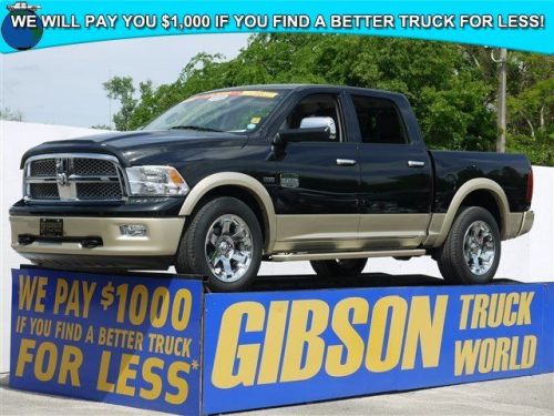WWW.GIBSONTRUCKWORLD.COM*2011 Dodge Ram 1500 Laramie Longhorn Edition Crew Cab Hemi 4X4* Carfax 1 Owner with powertrain warranty, good thru 7/5/16 or 100k miles. Also comes with 1 year REAL FREE BUMPER TO BUMPER WARRANTY honored anywhere in the United States with our exclusive 15 DAY RETURN/EXCHANGE POLICY! That is how confident we are in our trucks! Do not make a $3K+ mistake, B4 you buy a used truck demand to see shop bills & have the truck inspected by a 3rd party! Riding on a nice set of BFGs with 20 inch wheels, $1,200 navigation system, $1,000 power sliding moonroof, $500 spray bed liner, $470 backup camera & sensors, $250 power sliding rear window, $120 adjustable pedals, dual power heated/cooled leather seating with memory, heated rear seating, heated steering wheel, woodgrain interior trim, nerf bars, CD player, steering wheel controls, tilt steering, cruise control, floor shift, keyless entry with alarm, towing package, power windows, power mirrors, power door locks*Gibson is the only dealer that gives a REAL FREE 12 MONTH BUMPER TO BUMPER WARRANTY VALID ACROSS THE UNITED STATES, 12 MONTHS FREE MAINTENANCE FROM OUR 23 BAY SERVICE DEPARTMENT AND OUR EXCLUSIVE 15 DAY RETURN/EXCHANGE POLICY! It sounds too good to be true, but it is true! We will pay you $1,000 if you find a better truck for less, Gibson Truck World is Nations ahead of the competition! AT GIBSON TRUCK WORLD AN EDUCATED CONSUMER IS OUR BEST CUSTOMER**Repair Description: Total Invested = $659.88*10 Mile Road Test, 135 Point Inspection, Lube, Oil & Filter, Replaced Front Pads, Turned Rotors, Replaced Wiper Blades, Replaced Battery, Replaced 3rd Brake Light BulbBattery Condition Test : Good, Alternator Condition Test : GoodLabor time quoted by All Data Universal ShopKey Gibson Truck World in Sanford, FL has the lowest price for used trucks period! Gibson specializes in pre-owned Ford trucks, Dodge trucks, Chevrolet trucks, GMC trucks, Jeeps and SUVs. Gibson Truck World sells, ships trucks across the country & worldwide. We have a large selection of F150, F250, F350, F450, F550, RAM 3500, 2500, 1500 Chevy or GM 3500, 2500, 1500 quality pre-owned pickup trucks.