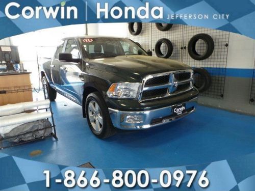 Big Horn Regional Package, Quick Order Package 26G SLT, Quick Order Package 26Z Big Horn (Bighorn Badge, Bright/Bright Billets Grille, Class IV Receiver Hitch, Dual Rear Exhaust, Fog Lamps, Halogen Quad Headlamps, Leather Wrapped Steering Wheel, and Steering Wheel Mounted Audio Controls), ST Popular Equipment Group (SIRIUS Satellite Radio and Speed Control), HEMI 5.7L V8 Multi Displacement VVT, 4WD, AWD / 4x4/ 4 wheel Drive, and Non Smoker!. New Arrival!Creampuff! This beautiful 2011 Dodge Ram 1500 is not going to disappoint. There you have it, short and sweet! Consumer Guide named the Ram 1500 a 2011 Large Pickup Best Buy! Don't get stuck in the mudholes of life. 4WD power delivery means you get traction whenever you need it. New Car Test Drive said it "...has the bold and brash style for which it is well known, and it's a refined package with loads of amenities for the occupants..."Right on the Price, Right on Missouri Blvd! Corwin Honda of Jefferson City! Corwin Honda of Jefferson City has a terrific selection of high quality pre-owned vehicles of all makes and models. All of our pre-owned vehicles have been inspected, so you can drive with confidence! Come see the Corwin Difference today! Right on the price. Right on Missouri Boulevard, Jefferson City.