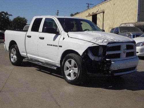We are pleased to offer this 2012 Dodge Ram 1500 ST Quad Cab that is damaged (please take a look at pictures for current damage) this like new Dodge is the perfect project vehicle and does run in lot, which means it can be driven on to a transport truck or trailer since it is currently damaged!. We can offer Domestic and International shipping arrangements, please take a look at the pictures for more details and don't pass up the opportunity to own this builder for a fraction of the price as the listing can be ended any second due to local buyers!!!!