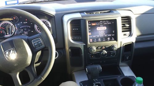 I am selling my 2013 Ram 1500 Big Horn 5.7 Hemi equipped with: black/charcoal gray interior with custom black perforated leather seats, double gray stitch from Katskins. Mopar leveling kit installed by dealership. Spray in bedliner also done at the dealership. The 2013 changed the interior quite a big with the 8.4 uconnect touch screen interface. This allows for Bluetooth streaming from cell and hands free talking. Power folding mirrors with puddle LED lamps, auto locking tailgate, I just had a Magnaflow muffler installed to deepen the sound a bit, kept the resonators to keep it from being annoyingly loud. Upgraded LED interior lighting. HomeLink buttons for garage door. The entire truck has been debadged (emblems removed) for the clean smooth look. As of today the truck has had its first oil change with rotation of tires with 12743 on the odometer. This will change as this is my daily driver. Both sets of key fobs.