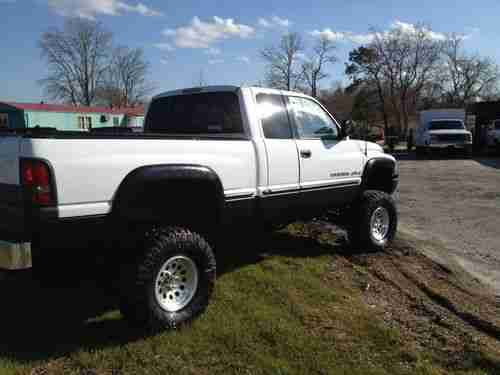 99 Lifted Dodge Ram in great shape. Has Mickey Thompson tires with 95% tread still left. AC/Heat work great. The problems are large dent on top right side of tailgate (see pic), stain on interior roof (see pic), crack in dashboard (see pic), and passenger door doesnt unlock from power lock. Everything else works great.