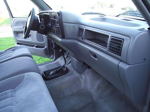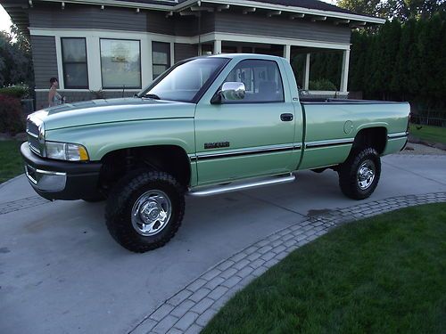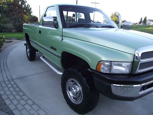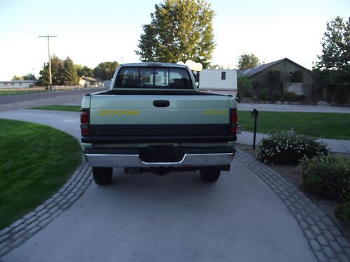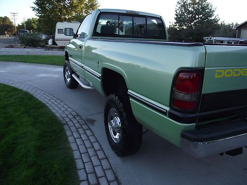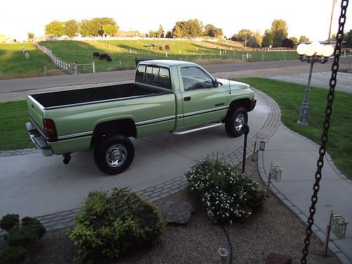 THIS IS 1995 DODGE 4X4 DIESEL REG CAB LONE BOX. TRANZ GOOD SHIFTS GOOD. ENG RUNS VERY GOOD. TIRES ARE 90% NO BONDO IN THE BODY. PAINT IS 80% IT HAS BEEN PAINTED AS YOU CAN SEE IT WAS GUN METAL GRAY. I GOT IT THAT WAY. IT DRIVES DOWN THE ROAD FINE, HAS GOOD POWER. EVERY THING WORKS GOOD. FOR MORE INFO YOU CAN CALL ME @ 208-371-8986 OR EMAIL ME MY NAME IS MIKE.