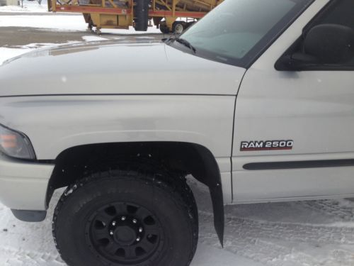 I have an extremely nice rust free, dent/ ding free 2000 dodge ram 2500 cummins diesel with 116k original miles, this truck has not been beat on in anyway the modifications were for a little extra power and fuel mileage. This truck is a 2wd that is leveled so it sits like a 4wd i have a kit to make it sit another 2in taller than it is now and i also have a rust free 4wd frame with cab , axles and all from a cummins for an extra 2,000 if someone wanted to convert it to a 4wd. I purchased the truck from the original owner that was 65 years old. The interior is spotless no rips , no tears or stains. Only flaw is the dash is starting to get a couple crack (just like every other 2nd gen) Exterior is rust free dent and ding free it was rust proofed from Zbart when it was new. Now for the upgrades and new parts. Transmission was just built less than 1,000 miles ago with a full rebuild with bigger clutches , bands, valve body, 5 star torque converter. I have the receipt for proof. All the modifications were done in the last 2,000 miles. FASS 150 lift pump, DSS 200hp injectors, BD jake/ exhaust brake, smarty SO3 programer, newer holset hx35 turbo with under 10,000 miles, 4in full exhaust, k&n filter, injection pump has under 10,000 miles, tinted windows, new brakes, new rotors, aftermarket wheels & 285/75/16 cooper discovery tires with 85% tread, aftermarket head lights, new alternator, new starter, new batteries, pac brake 2in leveling kit, fresh oil change always ran full synthetic rotella, spray in bedliner, the list goes on i have over 10,000 in new and aftermarket parts, the truck runs and drives and looks like a new one. It is the ext cab 4 door long bed with cloth interior, power windows , power seats, truck averages over 20mpg all the time i checked it yesterday and it was at 24.7 which is nuts for a 3/4 ton diesel. Im only looking to sell to get something better for our family. This truck is nicer and 99% of 2nd gens on the road. No leaks, It needs nothing and is ready for whatever you throw at it.