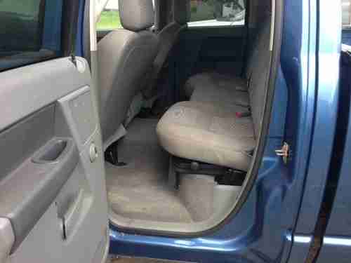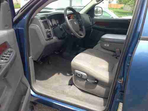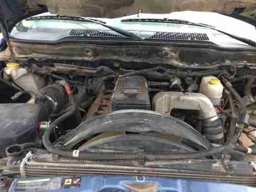 I am a small truck dealer in southeastern Indiana and I purchased this truck in an Inop sale in San Antonio, TX. This truck will be offered at No Reserve. So I have for sale a 06 crew quad cab 4wd long bed 5.9 24 valve automatic common rail cummins pickup. The truck is blue in color with gray cloth interior. The body is in decent condition, other than 2 small dents in the right front fender, a dent around the right front door handle, and a dent in the right front bedside, and a couple dents in the tailgate (as seen in pics), and the left tow mirror is broken, and the top pad on the front bumper cover is silver, and there is absolutely No rust. The interior is in very good condition with little to no stains, tears, or damage. It has air, cruise, and tilt, power windows and locks. The tires are good and are mounted on a set of factory chrome wheels. The bed has a bed mat and has never had a gooseneck hitch mounted in it. The truck has unknown miles on it. I got the truck home to find out it had some missing pieces and a hole in the block (pic). The engine computer, batteries, the turbo, and the front driveshaft and yoke have been removed and are not there. The miles do not light up when I hooked a jump box to it, It reads No Fuse! I assume the miles won't come up do to the engine computer missing. I would guess the miles to be decent for how clean the interior is, but again I have no way of knowing. Since I am a licensed dealer Indiana residence will be responsible for 7% IN sales tax. Buyer is responsible for shipping, although I will assist in loading. Please do not bid if you do not have the funds or do not intend on completing the deal. No Reserve so bid to win! If you have any questions or would like to come and inspect the truck please feel free to call or text me at (812)614-8323