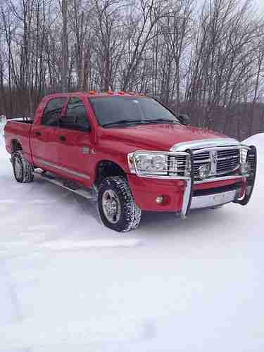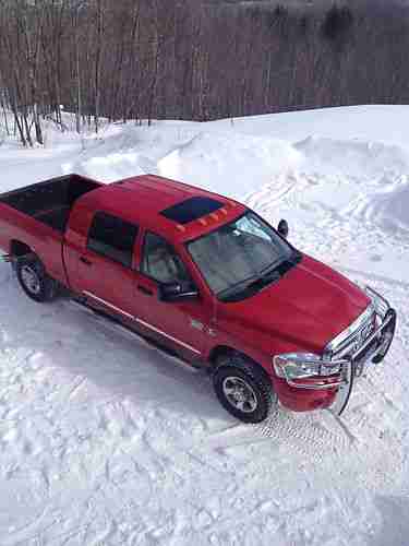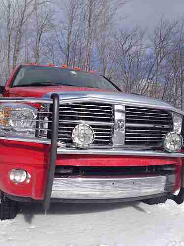 I bought this Mega Cab new from a dealer in Grand Rapids, Mi. It has every thing i wanted , including rare sun roof. The Dodge Ram really stands out bright red paint in perfect condition, no dents or any other body problems. Has a few dings on rear chrome bumper, and a dent in stainless steel step bar pass. side. Thats it ! The list price was 55,115.00, its loaded with all options that I know of.. I have never owned a vehicle that could go down the Interstate almost whisper quiet, car trailer in tow loaded, you never knew you were towing anything, no sway ever, no slow down on hills ever ! Fact is once I had a real heavy load and going up a steep grade, when I poured the coals to her the rear tires would bark at 55 mph !!! ( that was just once).. Now, I only used it 3-4 times with the trailer out of town, and to haul building materials for my new house on the trailer in town., which took me 4 years building house myself.. Ninety per cent of the driving was open road, no trailer and all the room you could ask for. There is almost the same amount of floor space in the interior as in the bed,. with it being a Mega Cab.The interior looks like new. Non smoker, no kids, just me and the wife driving to Chicago ( 400 mi. ) to p/u materials, etc at Ikea.for our Modern Minimalist home overlooking Lake Superior.