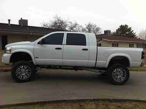 2008 dodge mega cab, 4x4, leather, auto, Laramie, 8" rize lift kit, 37" Toyo tires, 22" wheels, power bed cover, power steps, 6" banks exhaust, banks cold air, runs great, 73,000 miles, great shape has all the bells and whistles. Will need tires soon. 30% tread left. There is no shipping for this truck.
