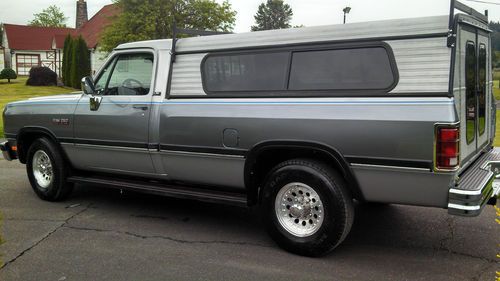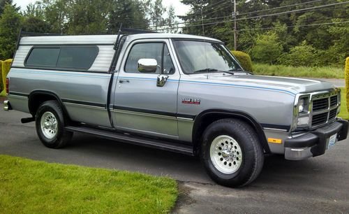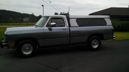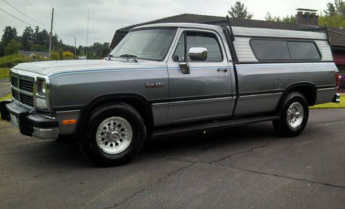 NO RESERVE! First generation 1991 Dodge Ram 250 Reg Cab 2wd Cummins Diesel LE Package, ONLY 91,456 ORGINAL MILES!! two tone grey over grey towing package, canopy, Newer tires, no wrecks, all original body and engine, Excellent Condition inside and out. This Dodge is equipped with the bullet proof 6 cylinder, 5.9L, 12 valve motor with automatic transmission This body is in superb condition and the paint on the truck is in great condition!! The interior is in great condition, all the power options work, including the A/C, There are no cracks in the dashboard, there are no rips or tares in the seats. Clean title.