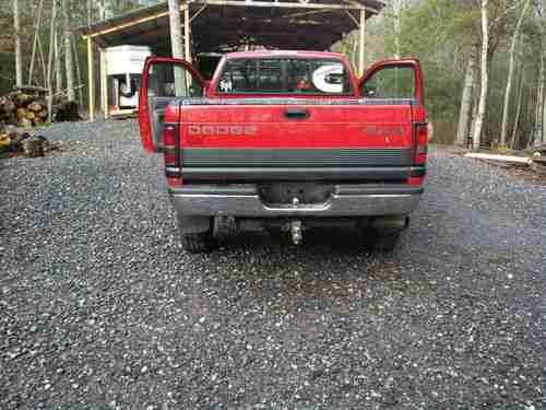 this is a real nice 2500 4x4 that has a 6spd (NV5600) trany out of an 01,trany and clutch have about 11k miles.transfer case is a NP205 devorced.engine is stock except for a 8# fuel plate.Runs great.the body is in good cond. with no rust and only minor dings no major dents,paint is in good cond and very shiny.Interior is used but good pass,seat and rear seat are excellent and only a small tear in the drivers seat.dash is cracked but has a nice cover on it.has a spray in bed liner as well as a B&W turn over hitch