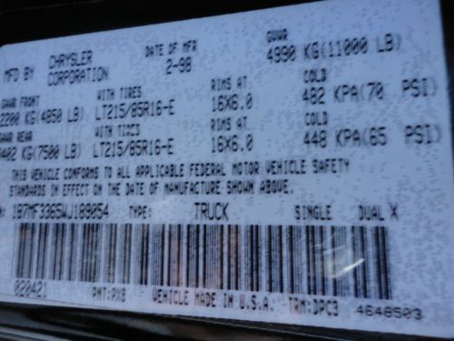 1998 Dodge Ram 3500 24 Valve Cummins Engine Laramie SLT package 106,954 Actual miles 2nd Owner Posi Track Rearend Power Seat Power Window Power Locks Never Had Ball in Bed Rarely towed anything, never anything heavy New Tires Cold A/C No Leaks Very well equipped Paint is a 9 out of 10 All factory glass Leather interior in great shape Truck is as good as it looks. No surprises. Rides and drives like new. Front end is good and tight. Please call or email if you have any questions. Available evenings and weekends. I will return any missed call. 417-291-9848 -Jimmy |