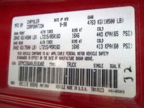 VIN (Vehicle Identification Number): 1B7MC33WXXJ516302