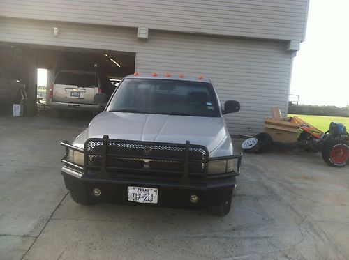 DODGE RAM 5.9L DIESEL 2WD 352,000 MILES NO SMOKE OR LEAKS OIL. A/C WORKS 6 SPEED TRANNY TRUCK IS ALL STOCK EXCEPT FUEL PUMP . HAS A FASS FUEL SYSTEM MOUNTED ON FRAME RAIL NEXT TO TANK . DASH IS CRACKED SEATS OR GOOD JUST NORMAL WEAR FROM USE NO TEARS . HAS GOOSE NECK HITCH WITH 6 PIN HOOK UP WINDSHIELD HAS A CRACK ON DRIVER SIDE . NORMAL DINGS AND SCRATCHES FROM USE AS A WORK TRUCK . TRUCK GETS 19 TO 20 MILES PER GALLON BETTER THAN A GAS TRUCK AND WILL PULL MORE TOO.AUX tank in picture is out of the truck has Custom front and rear bumpers