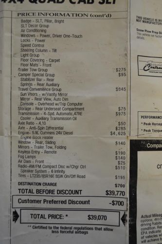 3500 srw - crew cab - 4x4 - slt - 5.9l cummmins turbo diesel - no reserve