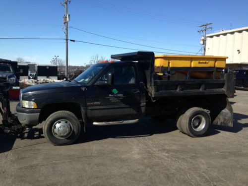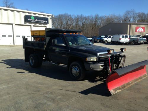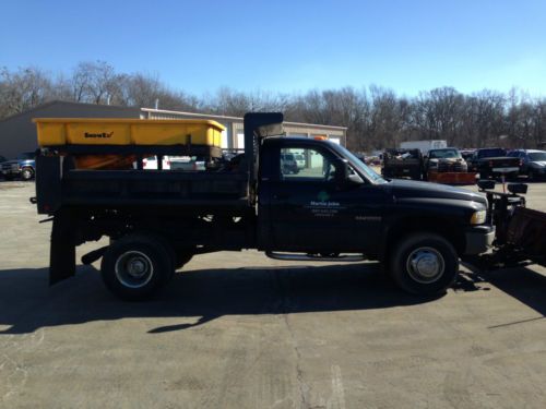 2001 Dodge Ram 3500 Reg Cab 4x4 Cummins Diesel Dump Truck With Western Snow Plow on 2040-cars