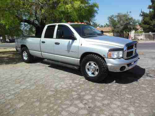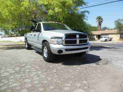 HELLO UP FOR SALE AT NO RESERVE IS AN OUTSTANDING 2003 DODGE RAM 3500 CREW CAB IN OVERALL GREAT SHAPE NO KNOWN MECHANICAL ISSUES WHATSOEVER VERY FEW DINGS AND DENTS FOR YEAR.INTERIOPR IS VERY CLEAN.IT HAS A 5.9L CUMMINS DIESEL AUTOMATIC TRANSMISSION ICE COLD A/C,NEW TIRES, B&W TRAILER HITCH WITH AIR BAGS IN REAR,TRUCK RUNS SUPER SMOOTH,IT HAS BEEN IN AZ AND NV ALL ITS LIFE SO YOUR GETTING A CLEAN DESERT TRUCK NO RUST!!WE HAVE CLEAN TITLE AND AUTO CHECK WITH NO ACCIDENTS WE ARE SELLING 100% NO RESERVE AND AS IS NO WARRANTY PLEASE FEEL FREE TO COME BY AND LOOK AND INSPECT TRUCK,ANY QUESTIONS PLEASE FEEL FREE TO CALL ME ANYTIME AT 702-428-0452