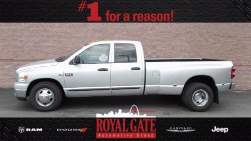 If you think big and diesel are both characteristics that predict a truck will have a noisy, rough ride, our Ram 3500 Turbo Diesel will be a pleasant surprise. It's as quiet as can be inside the cab and the truck takes you down the highway in smooth comfort. It's powered by a 6-cylinder 6.7-liter Cummins Turbo Diesel engine that delivers major power! One glance at our 2007 Ram 3500 tells you it's a work truck - its muscular body lines, big wheels and tires, heavy duty rear springs and high ground clearance are all an immediate giveaway. It's not hard to imagine the truck bed full of tools and supplies - or a trailer hooked to its hitch - but our Ram 3500 Quad Cab Turbo goes well beyond functional to pull double-duty as a truck that can move two rows of passengers in pretty decent comfort. This SLT boasts AM/FM with CD player, nice cloth upholstery, bedliner and power to the gills. Check out the tow package! Hook 'em up and hit the road! Print this out and call us NOW for your personalized test drive towards ownership! Hurry in today! We'll have the keys waiting for you! PLEASE CALL TOLL FREE 877-357-9147 FOR DETAILS. Give us a call today, and let's see how we can help!