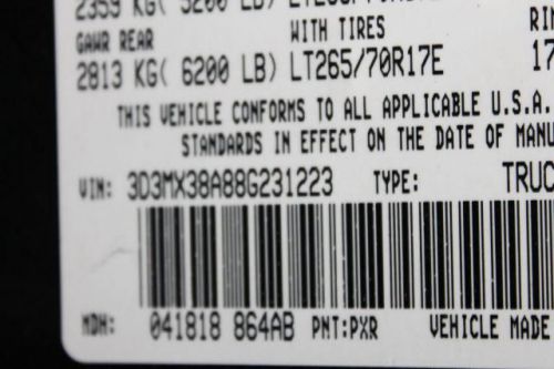 VIN (Vehicle Identification Number): 3D3MX38A88G231223