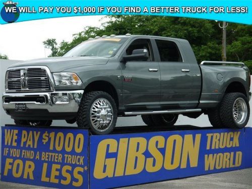 WWW.GIBSONTRUCKWORLD.COM*2010 Dodge Ram 3500 SLT Leather Mega Cab Dually Cummins Diesel 4X4* with powertrain and diesel engine warranties, good thru 8/6/15 or 100k miles. Also comes with 1 year REAL FREE BUMPER TO BUMPER WARRANTY honored anywhere in the United States with our exclusive 15 DAY RETURN/EXCHANGE POLICY! That is how confident we are in our trucks! Do not make a $3K+ mistake, B4 you buy a used truck demand to see shop bills & have the truck inspected by a 3rd party! Riding on $4,000 of 33 inch Toyos and 22 inch American Force wheels, $1,200 navigation system, $1,000 power sliding moonroof, $500 spray bed liner, $470 backup camera & sensors, $250 power sliding rear window, $120 adjustable pedals, power leather seating, nerf bars, CD player, steering wheel controls, tilt steering, cruise control, keyless entry with alarm, towing package, power windows, power mirrors, power door locks*Gibson is the only dealer that gives a REAL FREE 12 MONTH BUMPER TO BUMPER WARRANTY VALID ACROSS THE UNITED STATES, 12 MONTHS FREE MAINTENANCE ($1,000 VALUE!) FROM OUR 23 BAY SERVICE DEPARTMENT AND OUR EXCLUSIVE 15 DAY RETURN/EXCHANGE POLICY! It sounds too good to be true, but it is true! We will pay you $1,000 if you find a better truck for less, Gibson Truck World is Nations ahead of the competition! AT GIBSON TRUCK WORLD AN EDUCATED CONSUMER IS OUR BEST CUSTOMER**Repair Description: Total Invested = $2,374.62*10 Mile Road Test, 135 Point Inspection, Lube, Oil & Filter, Mount & Balanced 2 New Tires, 33X12.50R22 Toyo, Alignment, Replaced Evaporator Core, Evac & Recharged System, Replaced Tie Rod @ Pitman, Replaced O2 Sensor, Replaced Air Filter & Wiper Blades, Installed Tail Gate Cap, Replaced Washer ReservoirBattery Condition Test : Good, Alternator Condition Test : Good*Labor time quoted by All Data Universal ShopKey* Gibson Truck World in Sanford, FL has the lowest price for used trucks period! Gibson specializes in pre-owned Ford trucks, Dodge trucks, Chevrolet trucks, GMC trucks, Jeeps and SUVs. Gibson Truck World sells, ships trucks across the country & worldwide. We have a large selection of F150, F250, F350, F450, F550, RAM 3500, 2500, 1500 Chevy or GM 3500, 2500, 1500 quality pre-owned pickup trucks.