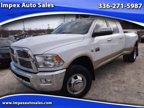 This 2011 Dodge Ram 3500 Mega Cab Laramie is equipped with the following options: automatic transmission, Cummins Turbo Diesel, power windows, power door locks, leather seats, heated seats, am/fm cd player, towing package, chrome wheels, dual air bags, air conditioning, 4X4, cruise control, keyless entry and much more!! CALL 888-489-3487 TODAY!! Impex Auto Sales is the Triad's LARGEST independent Pre-Owned dealer! Now accepting all major credit and debit cards! Visa, MasterCard, Discover, and American Express! Because we sell so many cars, trucks, motorcycles, and commercial vehicles, our prices are the ABSOLUTE LOWEST!!! We are a family owned and operated business serving the Carolinas since 2004. Contact us at 888-489-3487 or ImpexAutoSales.com.We pride ourselves on our reputation for honest service and delivering quality automobiles. Come by today and let us show you how purchasing a pre-owned vehicle SHOULD BE! We offer free shuttles from Greensboro's Piedmont-Triad International Airport (GSO), Greensboro Amtrak Station (GRO), and the Greensboro Greyhound Bus Terminal. We respect and honor your time so we can ship autos all over the United States and export all over the world! Don't trust just anyone to transport your new car! Our experienced partners in the shipping industry to Africa, Asia, South America, North America, and Europe makes us the Most Dpendable in the industry. Contact us for a shipping quote and get your vehicle fast! We are proud to have sales representatives fluent in English, Spanish, French, Arabic, and Japanese for the convenience of our valued customers. *****Please note, while we make every effort to ensure that our vehicles are listed accurately, we are not responsible for errors or omissions. Please verify all options, colors, vehicle condition, pricing and AVAILABILITY prior to purchase.****** We have a hassle free business approach that provides a relaxed and comfortable environment for our customers. Sell us your car even if you don't buy from us! We don't play the games that other dealers do: If you sell or trade to us, you get the same price! Come in today for a quick appraisal! They generally take no longer than 15 minutes! Stop by and get the best deal on a used car, guaranteed!