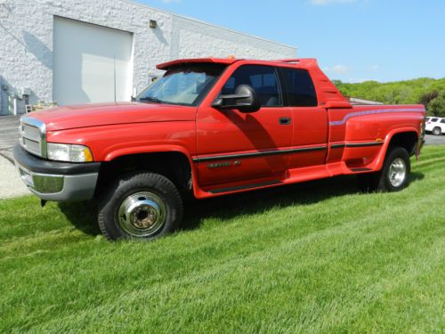 1996 Dodge Ram 3500 SLT Dually Fully Loaded, V-10 300HP/450ftlbs, 4x4 64,000 miles - Asking $10,500 Originally started as a show truck with the following LEER Fiberglass body enhancements: Windshield Sun Visor, Fender flares and step pads, Aero-wing behind cab. I purchased the truck in 1997 w/ 38,000 miles. The truck was then used as a boat and racecar hauler with the following upgrades and major service milestones: