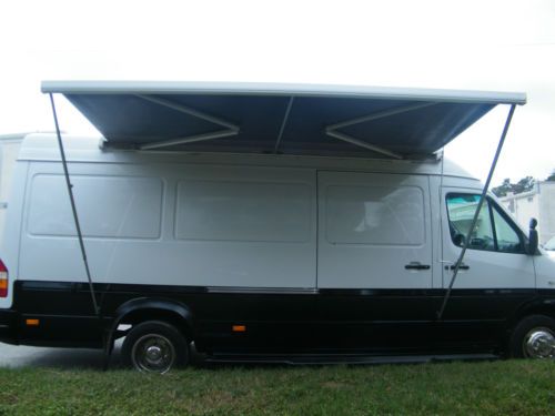 1-owner 2004 Freightliner Sprinter 158 wheel base. Custom-built cargo space that can be used as a mobile services. XM radio, DVD player, 2 TVs, navigation, backup camera, power inverter 110V set up, outside electrical outlet 110V, custom cargo A/C unit, 2 12 – volt ceiling fans with 3-speeds, mini fridge, 6000 lb tow hitch, retractable awning and much more. Custom work total over $20,000 (all receipts available). Bought this van from a friend to start a small mobile key shop but never used it. The Sprinter is in very good condition and the maintenance schedule was followed according to the manufacturer. Synthetic oil was always used. Engine runs good as it should and transmission shifts smooth. No other issues in my knowledge. If you are interested in this vehicle, you can inspect it before bidding. I can assist with shipping but the buyer is responsible for the shipping costs. If you have any questions, you can call me at 912 695 0323. VEHICLE SOLD AS IS, NO WARRANTIES |