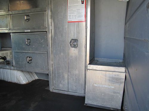 HAS ROOF RACKS AND SHELVES INSTALLED.