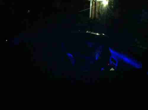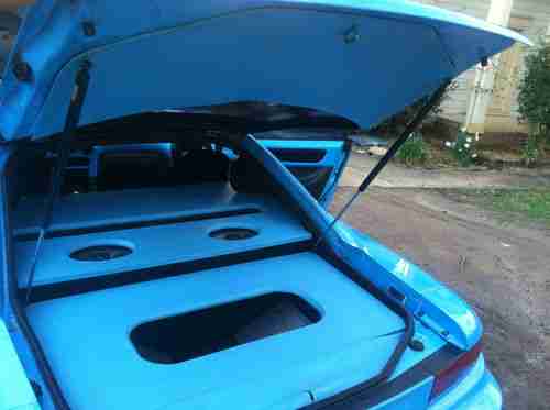 . The doors were restored with also carbon fiber and leather!!!! As well as the speaker box !!!! It has racing seats !! And also has the interior blue lights . With three adjustable modes . (Steady, strobe, or music sense) the steering wheel was also painted baby blue sparkles !!!