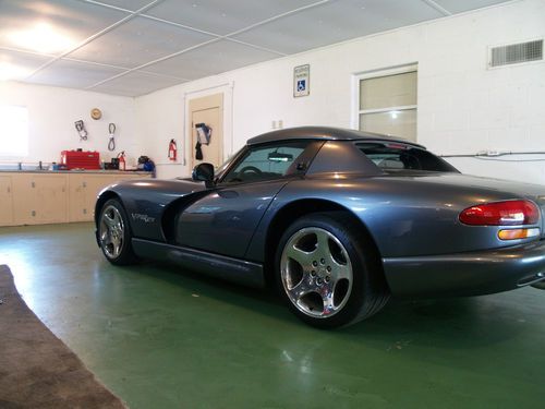 Steel Gray Dodge Viper with only 13,800 miles on it clear title, hard top, soft top, and interior cover as well that goes with this viper. Built in radar front and back and that is the only thing that has been put on this car after the factory. Very clean viper that everything works on it. No warning lights to speak of. I do not drive this car in the rain. There maybe a few chips here and there but will have to look very hard to find them. The front lip is free of any and all road rash from speed humps!!!!! Please email me or call me for more info on this great car. Fun and fast for a great price, you just cant beat the two. Thanks again.