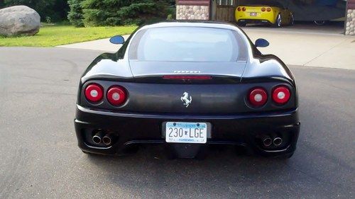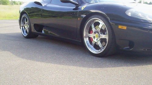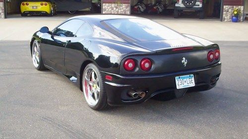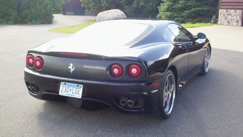 I am selling my 1999 Ferrari Modena F360 it is a black car with tinted windows black leather interior and chrome wheels. The car is in great condition runs and drives terrific the only reason I am selling is I have a ZR1 Corvette that I have been driving more then the Ferrari. The transmission is the F1 padel shifted unit and it works great. The wheels have no curb rash and the tires are almost like new. The paint is very nice, shines well but does have a couple rock chips here and there but overall looks very good. The interior is in decent shape just some minor wear on the bolsters otherwise very nice. It has new floor mats and a new battery and just had a recent oil change. I do not have any service records for the car it was purchased at auction from a dealer. As stated before the car runs and drives great the only two things it needs is the AC charged and since the battery was replaced the code entered by a dealer to unlock the radio. I recently did a search on the VIN and the car does show one accident in its history but the car does not have a salvaged title. The title is clear with no leins and it shows mileage to be correct. I am selling this car with a very low reserve due to the accident history so if you are in the market for a super buy on a real Ferrari bid with confidence I am selling this car. If you have any questions call me at 763-286-0611