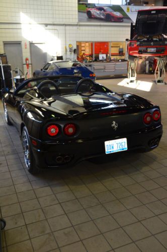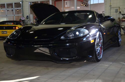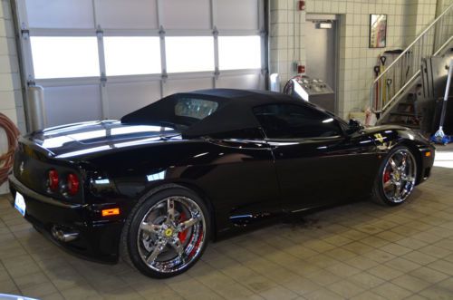 2004 Ferrari 360 Spider triple black with F1 transmission. Vehicle had major service completed 2/25/14 at 21,790 miles by Ferrari dealer including timing belts, new front bakes, and all fluids replaced. Vehicle features Tubi exhaust, custom stereo, chrome Maya 20" wheels, tinted side windows and windshield.