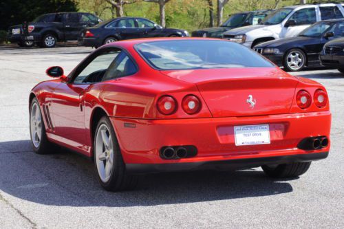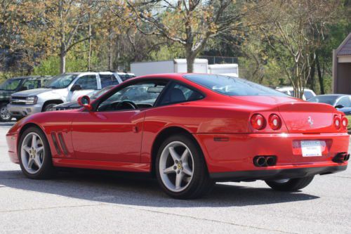 BEAUTIFUL 1997 FERRARI 550 MARANELLO V12 FINISHED IN ROSSO CORSA OVER NERO LEATHER INTERIOR, 5 SPEED MANUAL TRANSMISSION. THIS VEHICLE RUNS AND DRIVES BEAUTIFULLY, AND TIMING BELT SERVICE WAS DONE 2K MILES AGO IN OCTOBER 2013. THE VEHICLE HAS NEW MICHELIN TIRES, INTERIOR IS IN GREAT SHAPE, AND VEHICLE HAS THE ORIGINAL TOOL KIT.THE VEHICLE IS FITTED WITH A CLEAR STONE CHIP BRA OVER THE HOOD, BUMPER, FENDERS AND MIRRORS.CARFAX SHOWS 2 OWNERS WITH 31 DETAILED RECORDS, SPENT ITS EARLY LIFE IN CALIFORNIA, AND BALANCE IN SOUTH CAROLINA. ONLY KNOW DEFECT ON THE CAR- AIRBAG LIGHT IS ON, COULD BE AS SIMPLE AS A SRS COMPUTER RESET. VEHICLE ISPECTION IS WELCOME. THE CAR IS AVAILABLE FOR INSPECTION IN MARIETTA, GEORGIA. CALL ME AT 404-314-5380 IF YOU NEED ANY ADDITIONAL INFORMATION