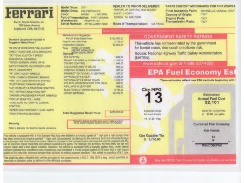 2010 ferrari california~shields~afs system~yellow calipers~yellow stitching~(US $177,000.00)