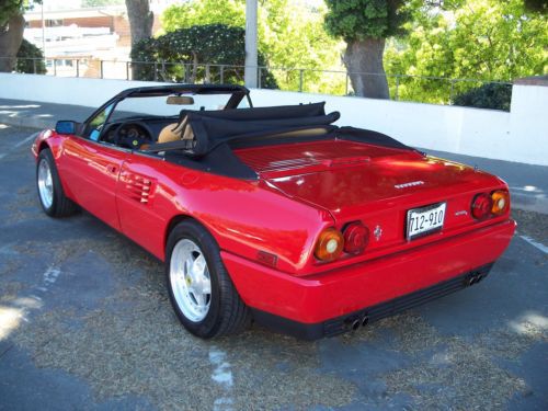 See above description.Have all books/records and receipts since day one.Has no spare wheel/tire,but they are easily available,and 328/348 spares will work.Has dealer installed after market 2-piece wider wheels,and really helps with the stance.Also has after-market stereo/amplifier,but is disconnected.Built into front trunk is a trickle charger outlet,and jumper cables installed if necessary.Top looks to be original,and is in good condition.Rear window is a little cloudy,but OK.Has tonneau cover in rear trunk,but is far too much work to fit!!!.Has just had a $3000 service to make road worthy,with the necessary items replaced.The past second owner is a business partner of ours,and sold off some of his collection to us.The Ferrari just doesn't fit,and its time to go.I think the car is a solid 8 on a 10 scale,considering its 24 years old.Looks/runs/performs as it should.Clean Ca. title.One of only 1010 Mondial T cabs produced in 4 years of production.First year of power assist steering,and God knows they need it!!!.Priced fairly{we think} for a family Ferrari.Please don't hesitate to email for any other un-answered questions.Also....The power windows all work.Rear 2 are slow,and they ALWAYS are.Mostly from lack of use.A/C works,but needs a R/134 re-charge.Also from being stored for years.A new alternator is being installed on mon/Tues.Leather is original,but has been professionally stripped and re-dyed using the best Dupont dyes.Best of luck to all!...New alternator just done...Collector plate just for local driving,and not included.Bidders with no track record or new to Ebay must contact me before bidding,or bid will be cancelled.Sorry.....no more time to waste on non-qualified buyers.