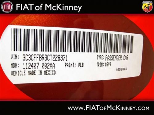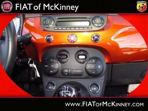 FIAT of McKinney is offering this clean and reliable 2012FIAT500SportPriced below NADA Retail!!! This credible Vehicle is available at just the right price, for just the right person - YOU... Hold on to your seats!!! FIAT has done it again!!! They have built some terrific-looking vehicles and this terrific-looking Sport is no exception*** Does it all! This 2012 FIAT 500 Sport has less than 22k miles... Priced below NADA Retail!!! This credible Vehicle is available at just the right price, for just the right person - YOU... Safety equipment includes: ABS, Traction control, Curtain airbags, Passenger Airbag, Front fog/driving lights...It has nice features like: wireless phone connectivity - BLUE&ME, Power locks, Power windows, Air conditioning, Cruise control.... Please contact our Pre-Owned Sales Department at 888-871-9401. Large selection of new and preowned vehicles. We have access to over 2000 pre-owned vehicles so if we do not have it, we can find it for you. We also deliver to most places in Texas and Oklahoma...call us for more details!