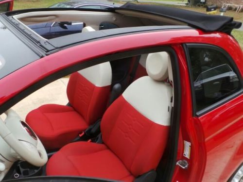 | 2012 Red Fiat 500C - Convertible One Owner..Very nice and fun to drive. Interior is red cloth with ivory leather trim Power Windows, Front and Rear Defrost, Speeding Indicator, Bluetooth with audio capabilities, Voice Command Easy on gas