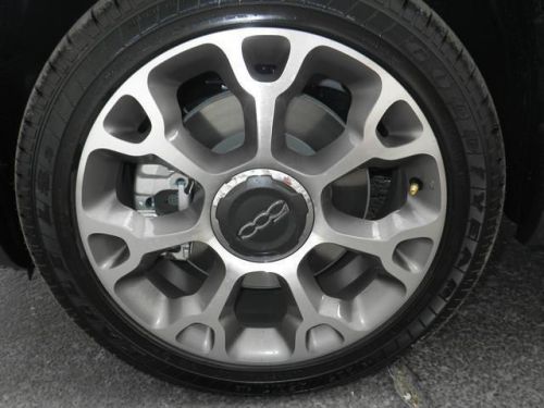The Fiat 500 "Tenebra," based on the 500 Abarth, is painted in Matte Grigio (Gray) with Nero accents, just like its sibling. In addition to gloss Nero headlamp buckets, parking and tail lamps, it is fitted with 16-inch alloys with a Nero chrome finish. Setting itself apart, the signature Abarth bodyside stripes (and mirror cap) are Grigio in color and there is a large Abarth "Scorpion" logo on the roof. Inside the cabin, the Tenebra features performance seats with leather upholstery, a flat-bottom steering wheel and other cosmetic upgrades. Like the Cattiva, the Beats Audio system is standard.