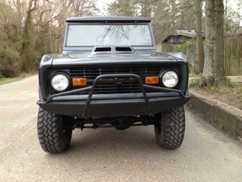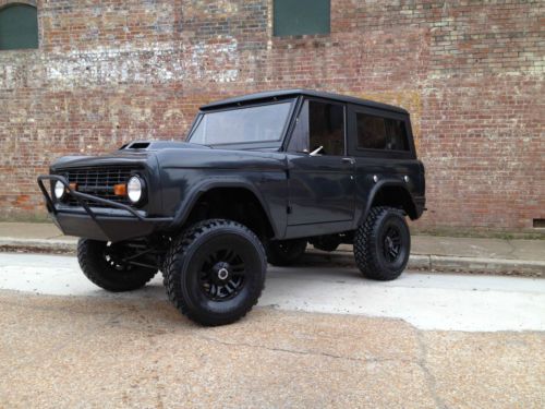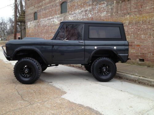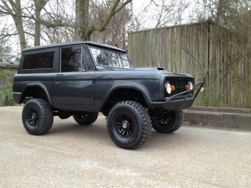 You are bidding on a Nice, Solid, Southern Bronco with some nice up-grades. This Bronco was freshly painted in December of 2013 with 2012 Ford Charcoal Gray with Satin Black accents. The undercarriage was steamed and repainted as well. The interior was stripped out and Linexed completely inside of the tub. This Bronco still has the original floor pans in it with very few small pin holes showing, No floor pan issues or kick panel issues. The Rocker panels are perfect along with the bed pan. The only place that was rusted was one small area on the passenger side inner fender as it gets close to the firewall. This is a very common issue. That section was removed as you can see in pics. New late model low back buckets from a chevy single cab were added, which are very comfortable and looks nice in the bronco. Factory black rear seat was re-installed.