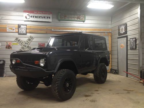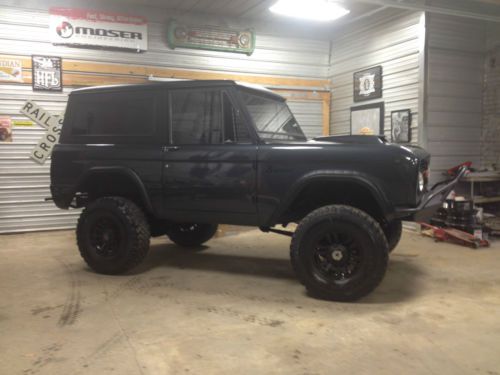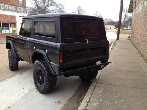 This Bronco has a Very Strong hight revving 306 V8 with a nice Edlebrock Intake and Carb Originally this bronco was a 3 speed, but has been converted to C4 Automatic and J-Shift Transfer case with a B&M ratchet shifter in the floor. Manual Drums Brakes were removed and replaced with Power Disc Brakes in the Front. Completely New Ford 9 inch with 411 Gears and Locker in the Rear Wild Horses 3 inch Suspension lift and 3 inch Body Lift MB Motoring Satin Black Rims on 33 inch Buckshot Radial MT's Factory Fuel Tanks Removed and replaced by One Single Oversize metal tank in the rear Custom Pre-Runner Style Bumpers front and Rear This is an awesome looking bronco and very powerful. This is not a frame of restoration, but shows very well. This bronco was built to just be a tough toy and look mean. There are a few things that aren't perfect and may need a little tweaking or adjusting, but overall it is a great SOLID bronco. If you have any questions please feel free to call 662-721-5009 any time. Thank-you for looking and good luck bidding. |