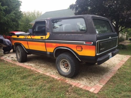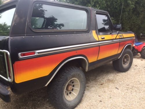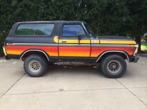 For sale is my 1978 Ford Bronco. This has the Ranger XLT package and has the Freewheelin' decal package. I am the third owner of this vehicle. I purchased it from the previous owner who lived in Michigan and had it since 1998. He never drove it in the winter which is why it is so clean. This is a Colorado truck and has very minimal rust. The two places where it has rust are the corners of the doors, and a quarter size hole in the floorboard, besides that it is a very clean truck. It has the original motor that was rebuilt by the previous owner 4 years ago. he had it rebuilt by a local engine shop and they put a mild cam in it. It has an edelbrock performer intake manifold with a 600 cfm edelbrock carb. The truck runs and drives great but needs to have the carb tuned properly as it is running a little rich. The truck has 4:10 gears and a detroit locker in the rear. The 4x4 works great with no issues. I installed new brake lines from the master cylinder to the proportioning valve, and new lines on the rear axle housing. The truck has had a roof put on it at one point in its life, but the new one is in good shape with minimal rust. overall this is a great truck and I'm getting rid of it because I just don't drive it enough. Buyer either has to arrange for shipping or pick up in person.