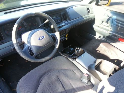 2000 Ford Crown Victoria Police Interceptor 150,000 miles, retired Police Vehicle Up for auction is a beautiful and clean Retired Police Interceptor. "Police Interceptor" is a special designation given to Crown Victoria's made specifically for the purpose of being a law enforcement vehicle. While this designation simply limits this vehicle to having an AM/FM radio head unit, it includes a special computer chipping that maximizes engine performance and horsepower. Additionally, this vehicle has been specially modified with police specification gear ratios which maximize power and torque. THIS CAR IS FAST! This vehicle is in excellent running and driving condition as it has been regularly maintained by professionals throughout its service with a local police agency. Because it was used as patrol vehicle, this vehicles has suffered normal interior wear associated with its prior use. The exterior paint is also quite nice but does have scratches and scuffs from normal use. A huge plus, this Police Interceptor also includes a very rare and expensive partition cage which is used to detain prisoners in the back seats of the vehicle. Also, the rear seats has been replaced with a plastic water resistant bench seat which utilizes the original safety restraint system (seat belts). The rear doors have also been disabled from the inside but are fully functioning from the outside door handles as well as the power door and window controls on the drivers door.