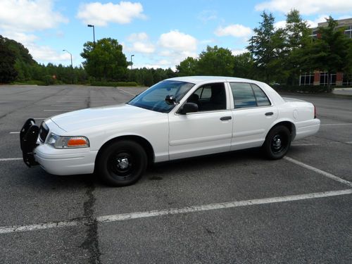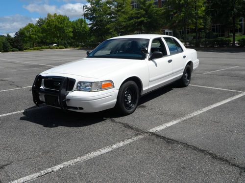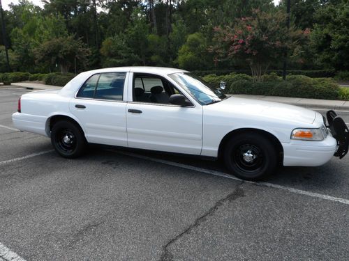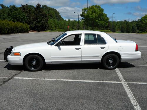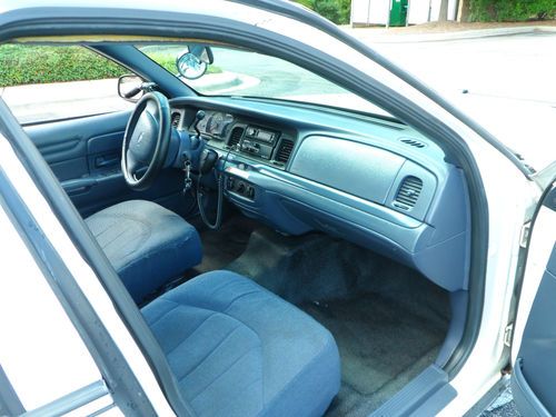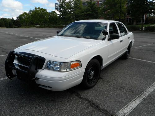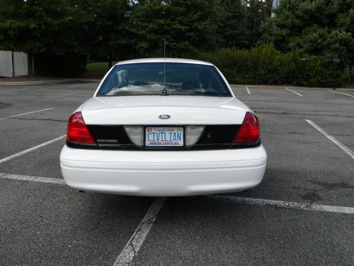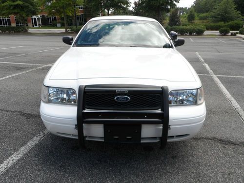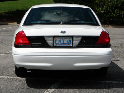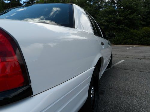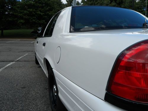 Up for sale is my 2001 Ford Crown Victoria Police Interceptor. This car is nice!! It has spent its whole life as a High Point North Carolina School Resource Officer Police Car. The Car-fax on this thing is perfect! Absolutely NO RUST! Don't waste your time buying a Northern car. I have and learned the hard way. From now on its only southern cars like this one for me. They just cant be beat. No rusty frames, body panels, bolts, or any of that garbage you get with a northern car. This car only has 69,708 miles and it runs and drives better and tighter than any car I have ever owned. Really, this car is nice. The Police Department repainted it a nice bright white. Anyone who knows these cars knows that they had a major problem with peeling paint. You don't have to worry about that with this one as it has been repainted. The paint job is very nice! Accident free, no door dings & no dents. The Push Bar on front is literally brand new and perfect! It is an expensive item and looks so cool! The tires are literally BRAND NEW!! They cost me $900 and have less than 100 miles on them. The car comes with a new CB Radio & new Stereo as well. Everything works perfectly except the AC needs to be charged. Don't miss your chance to own a RUST FREE, beautiful P71 with all the cool options. The wheels, push bar , police interceptor badge, the spotlight all make this car look so cool! Nobody passes you on the road because they think you are a cop!